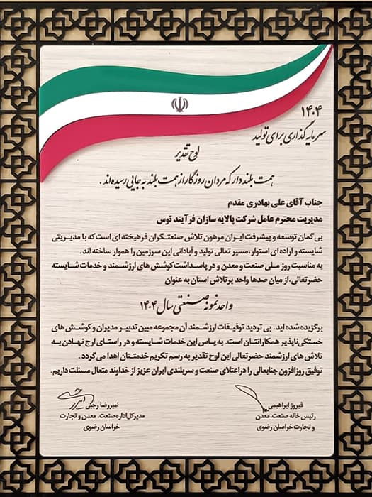 جدیدترین محصولات تولیدی توسط کارخانه پالایه سازان فرآیند توس (Palayesazan Toos)